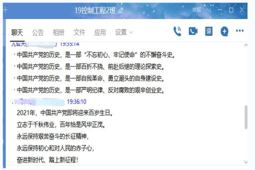 观影活动结束后,各班级展开了热烈的讨论。同学们纷纷认为:从辛亥革命爆发,到1921年中国共产党成立,再到中国特色社会主义新时代,中国共产党的发展史充分说明了中国的胜利来之不易,在中国共产党的领导下,中国的国际地位不断提高,影响力不断扩大,成为国际舞台上一支重要力量。做为新时代的大学生要时刻铭记先烈们的嘱托,努力奋斗,为党和国家的发展添砖加瓦。