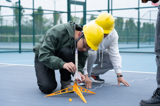 赛前备战,追求至善。比赛报名于4月17日晚开始,18日下午14时左右,由优秀学长和曾经的参赛人员在明德楼教室,给予同学们参赛指导和比赛经验。经过学长的细心讲解后,同学们对于固体火箭的制作流程渐渐明晰,进而理解并熟悉了操作步骤,领取材料后,准备一展身手。准备的一周期间里,同学们在制作过程中也有着诸多疑惑问题,优秀学长在比赛群里的及时答疑,为同学们明晰了各自的设计思路,也确保了比赛的顺利进行。同时,各比赛小组之间也互相交流,分享经验,大家合作得愉快而融洽。