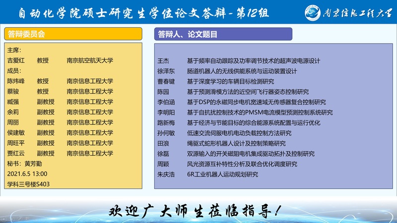 2021年自动化学院硕士研究生学位论文答辩-第12组