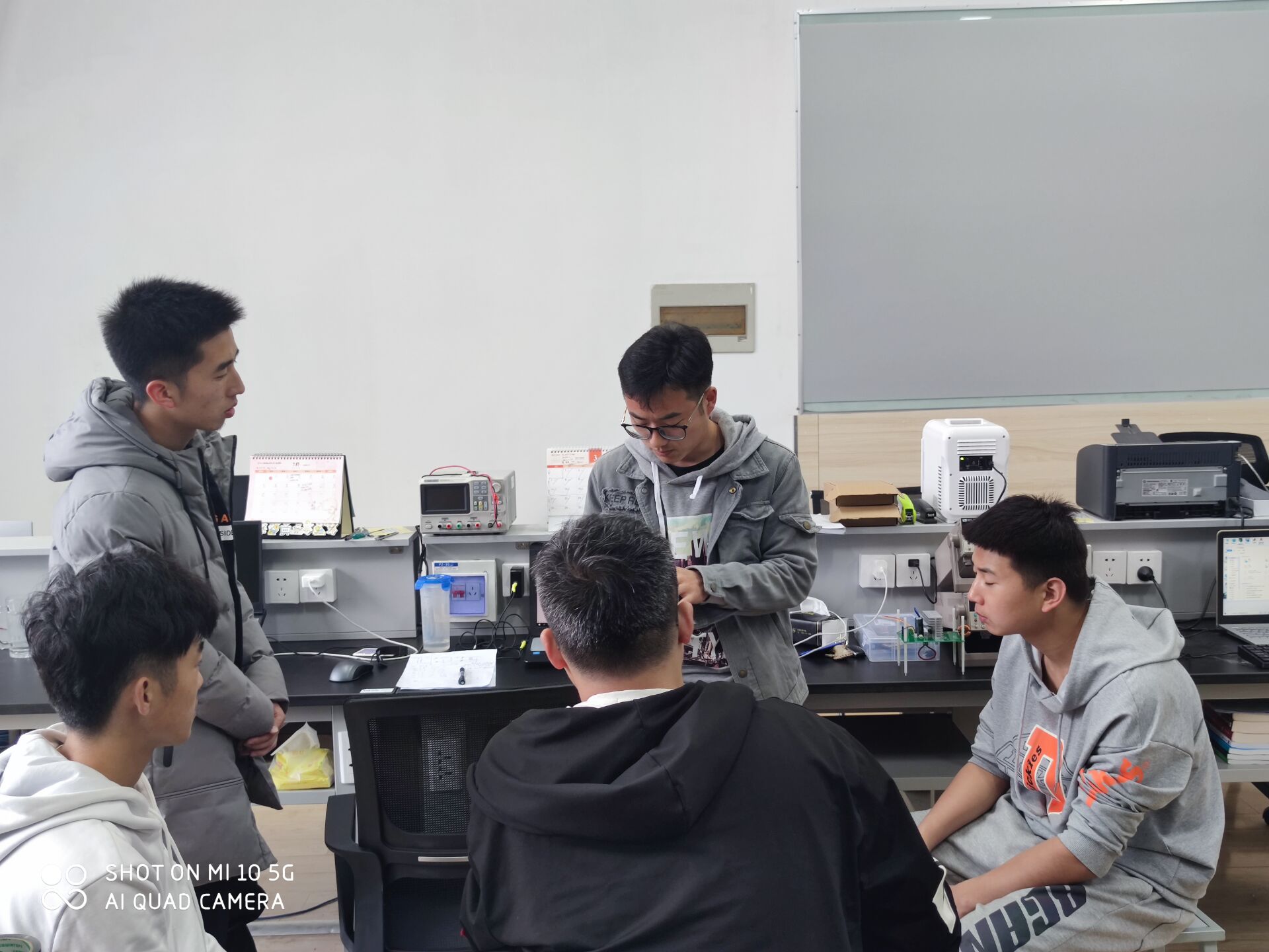 上午,毛鹏老师首先通过检查提交上来的作业,了解同学们学习进展,悉心回答了同学们遇到的问题,并充分肯定了同学们精心做笔记,积极思考钻研的学习品质。下午毛老师安排研究生学长杨朝斌为小组成员做了电路元器件方面的专题讲座,开拓了同学门的视野。随后,杨学长耐心的解释仪器的使用方法,并细心地给学员们分享一些实际操作中的经验与技巧。一天的学习和仪器设备实际操作为第二天的上电实验奠定了基础。