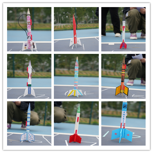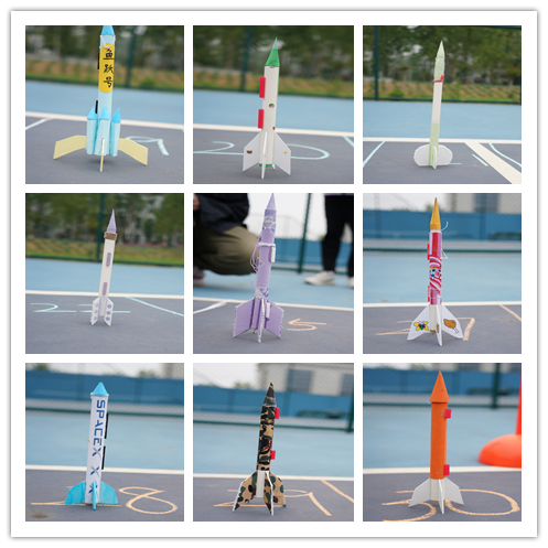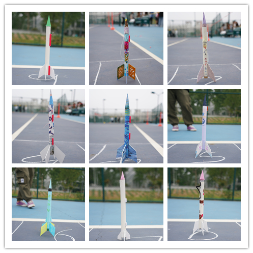 比赛活动经过前期的宣传,同学们积极报名,经过比赛前一周的培训引导,参赛成员领取了比赛材料后,利用一周的时间精心制作,都完成了属于自己团队的火箭模型。