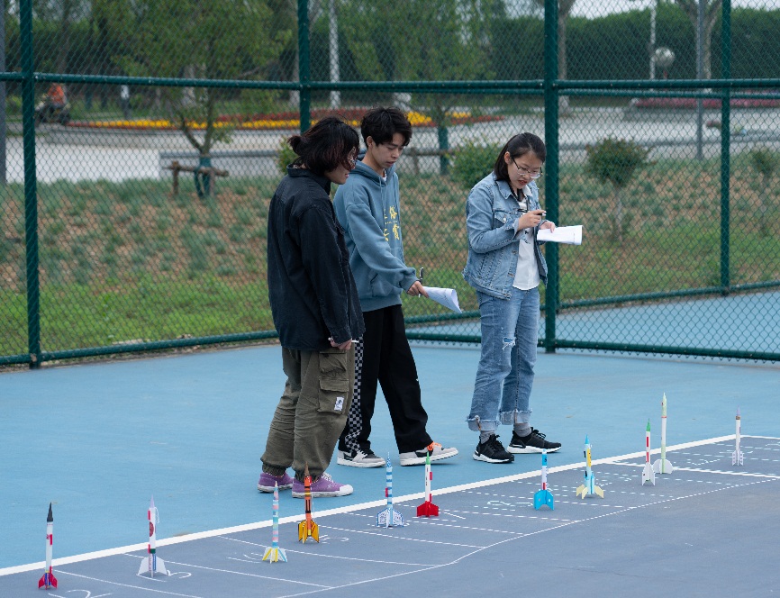 比赛于4月24日下午13:30左右在西苑网球场如期开始,经过前一天晚上的抽签,参赛小组按照顺序有序地进行着火箭发射,现场的裁判组、发射组、签到组以及后勤组成员也都各司其职,确保比赛进程秩序井然。