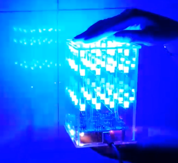 由科协技术部提供相关培训,分组制作由六十四个方形单色发光二极管、9*15cm万用板、89C52RC单片机及底座、晶振、排阻、小排针、电容、电路线等组成的科技“魔方”为4*4*4的光立方(制作时所用到的元器件以及工具由自动化学院科协提供)。