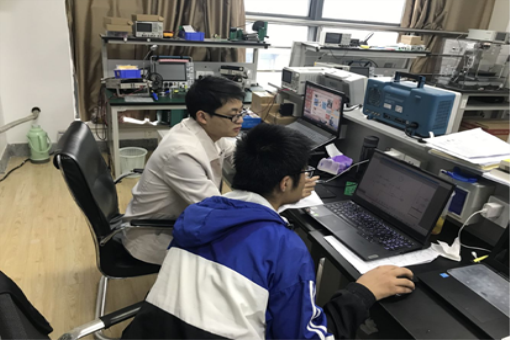 随后,同学们在毛鹏老师的带领下参观了制作好的各种电路样板,以及实验室研究生设计焊接的电路板成品。看着错综复杂的排线与布满元器件的板面,同学们惊叹不已。毛老师鼓励大家道:“多多参与兴趣小组活动,相信同学们很快也能设计、焊接出属于自己的那块电路板,这就是动手实践的乐趣所在。”