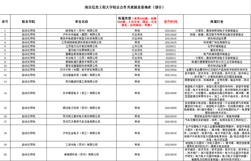 南京信息工程大学校企合作共建就业基地库(部分)