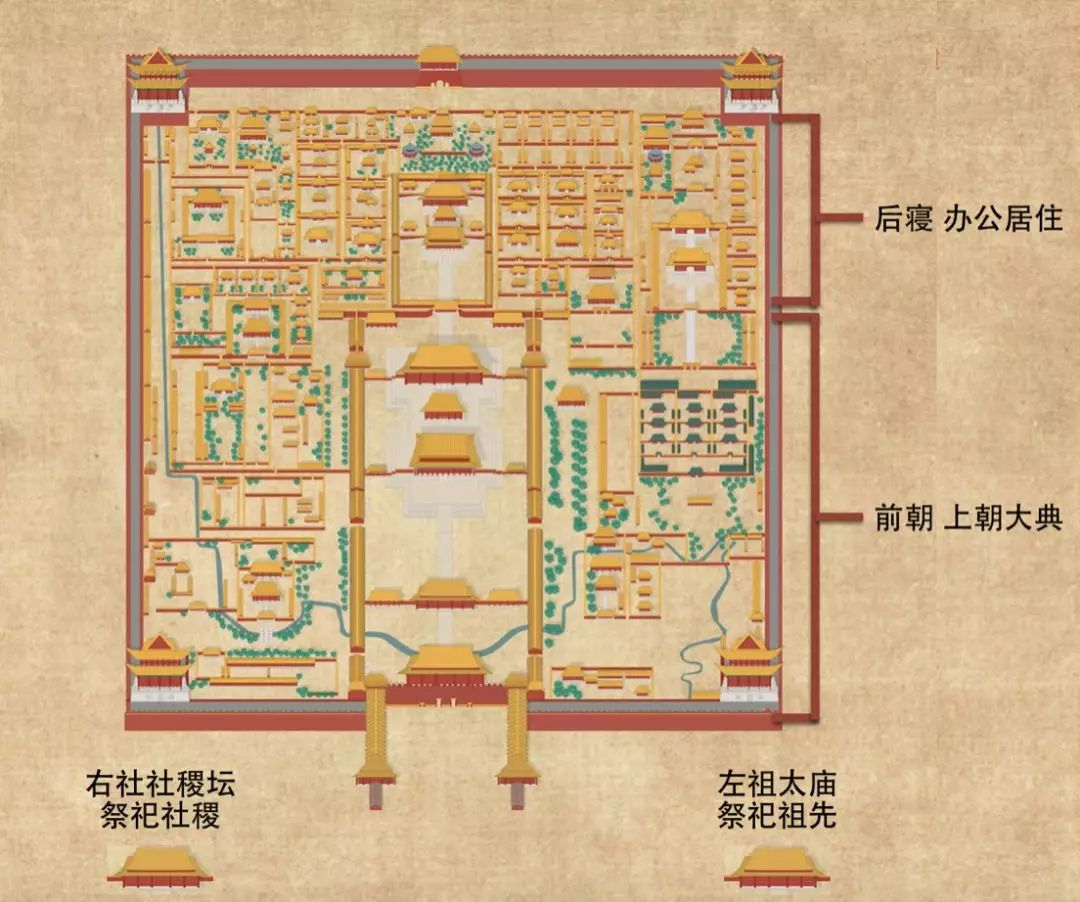 中国传统建筑凝聚了一代又一代东方匠人的智慧与汗水。宗室尊崇的“左祖右社”(见图2)、“前朝后寝”,民间偏爱的“前店后厂”、“四水归堂”,佛教规约的“伽蓝七堂”、“九层浮屠”等一系列章法,都离不开建筑技艺的发展与成熟。同时,中国的审美法则、哲学思想、宗教发展、历史沿革、文化脉络等元素通常与中国传统建筑有机地融为一体,这为后来人学习、欣赏、考证历朝历代的文化发展成果带来了极大的便利。当下,仍保存着一大批由彩画、石雕、木雕、砖雕、楹联、泥塑等多种艺术形式精巧点缀,并与塔、阁、台、坛、宫殿、府衙、庙宇、官学等传统建筑完美结合的传世之作,大学生完全可以从中找寻到中华文化之所以自信的答案。文化自信,从本质上来讲是一种自觉的心理认同、坚定的信念和正确的文化心态。《中庸》有云:“行远必自迩,登高必自卑”。高等院校是宣传和发展马克思主义的重要阵地,培育大学生文化自信既是做好意识形态工作的前提,也是守好意识形态阵地的要求,更是学习好、继承好、传播好中国优秀传统文化的根本保障。因此,高等院校思政教育工作者需要提高站位,从培养中国特色社会主义合格建设者和可靠接班人的角度来有序、有效、有章法地培育大学生的文化自信。