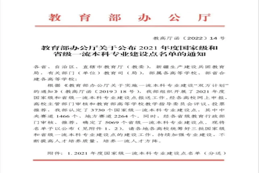 教育部近日发布了《教育部办公厅关于公布2021年度国家级和省级一流本科专业建设点名单的通知》, 我院电气工程及其自动化专业入选国家级一流本科专业建设点。