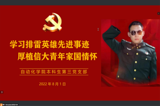 8月1日,正值中国人民解放军建军95周年,自动化学院本科生第三党支部召开“学习排雷英雄先进事迹 厚植信大青年家国情怀”线上主题教育大会。支部书记陆航宇等全体党员参加大会,支部副书记樊佳俊主持活动。