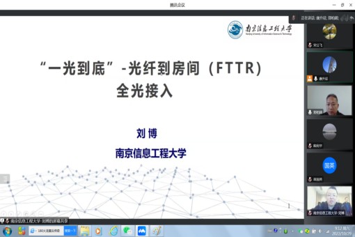开幕式后是大会报告环节。首先由南京信息工程大学副校长刘博教授作了题为“‘一光到底’-光纤到房间(FTTR)全光接入”的报告,详细介绍了FTTR作为一种光纤部署的基本技术方案,可以满足高速和空间网络全覆盖的小型化、低功耗、智能化网络部署目标。FTTR可实现全光极简,扁平化运维,全区域大范围任意点布局;信能同续,断电不断网,全场景无间断持续性通信;超大带宽,支持多用户,大容量多接入无间断切换。