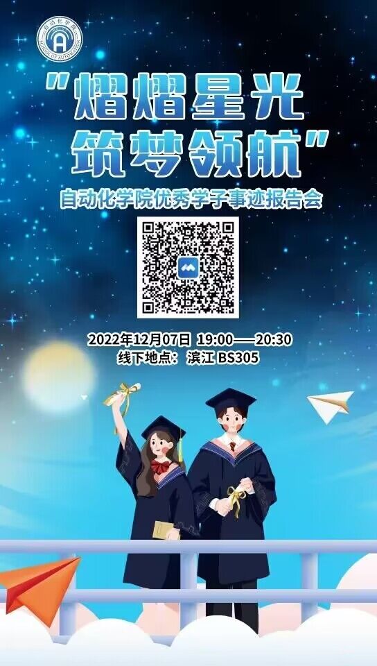 为帮助大一同学充分了解考研、保研以及竞赛等方面的信息,进一步明确奋斗方向,做好大学生涯规划,自动化学院于12月7日晚面向全体22级新生举办了“熠熠星光,筑梦领航——自动化学院优秀学子事迹报告会”。此次报告会邀请到三位经验丰富,成绩优异的南信大学子分享个人经历,引导大家确立科学的生涯目标。