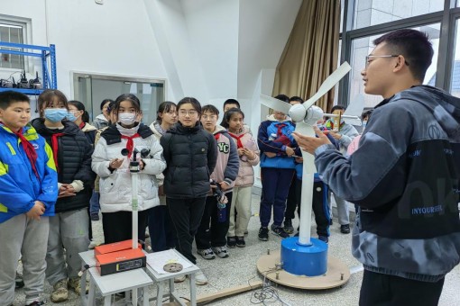 游历完智能车实验室,新能源电力电子技术社团的志愿者吴新懿同学带领着孩子们来到了新能源电力电子实验室,他从新能源引入话题,询问同学们什么是新能源,使用新能源的好处有哪些,小朋友们积极回答。之后吴新懿带领大家观看了风力发电机模型,风力发电机由叶片,传动装置,发电机,机匣等部分构成。小朋友们眼睛紧盯着模型,生怕漏掉任何讲解内容。之后吴新懿着重介绍了风光互补控制机柜,小朋友们了解到风光互补系统相对于单一的光伏发电或风力发电,有发电效率高,系统智能化程度高等优点。之后,小朋友们又来到了N503实验室,吴新懿从生活中诸如冰箱、空调等可以控制温度的家用电器入手介绍了实验室的一个重要仪器——温度控制柜,它可以十分精确地控制温度,并且对实验器材的加热,恒温等简直小菜一碟。在参观过程中,发言积极的小朋友还得到了神秘礼物——南信大校徽的奖励。夕阳西下,孩子们的科教之旅也接近了尾声,他们的脸上都洋溢着意犹未尽的神情。在参观的过程中,孩子们时而凝眉阅读,时而积极讨论,遨游在科学的海洋里。