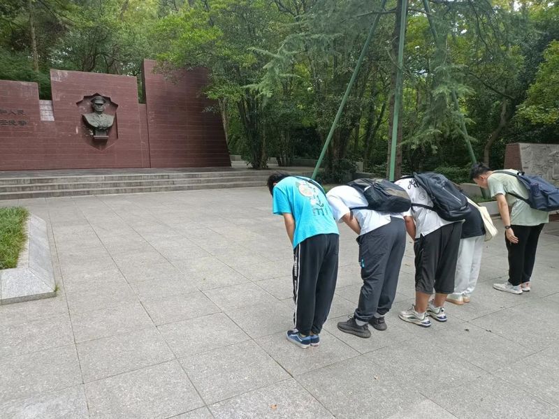 7月6日,小分队的成员们来到雨花台革命烈士陵园进行瞻仰活动。园中的一尊尊雕像都象征着爱国志士宁死不屈的伟大精神,成员们深刻的感悟到了革命的艰辛。在参观雨花台烈士陵园江苏公安英烈墙时,小队成员们肃穆挺立,鞠躬默哀,寄托了无限哀思和深情怀念。