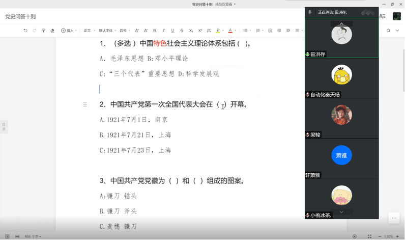8月16日,小分队成员们面向22届新生开展线上宣讲,分享此次活动的所见所闻与所感。分享会上设置了党史知识竞答,同学们都踊跃积极地回答,线上分享会效果良好。