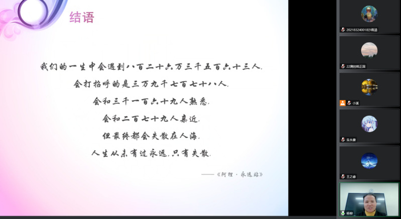 通过杨老师深入浅出的讲解和生动有趣的举例,让我们清晰理性地理解了大学中的各种关系,希望大家都能珍惜大学期间和他人的关系,正确处理好每一段人际关系。