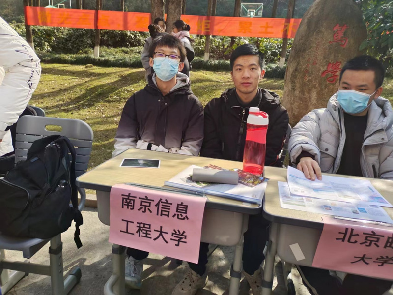 下午13时,张益铭与陈奕陶同学事先进入校园内,在校园的高三楼前摆好宣传点,分发南信大的宣传单,为宣讲活动进行预热和宣传。