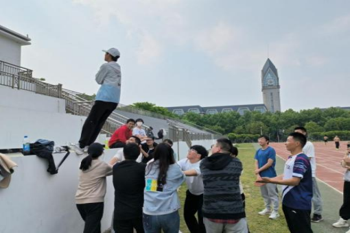 活动前期,宋老师先与班长马润彬、心理委员陈梓萌、组织委员沈子涵了解了班级基本情况,根据同学们的需求和现状,设计了具体的活动内容,强调了活动的安全和注意事项。4月26日下午一点,22级大数据2班的同学们集体来到了中苑操场,老师和同学们相互自我介绍后,就开始了热场活动:找零钱。活动内容为:女生代表一元钱,男生代表五毛钱。由宋老师说出具体价格数目,由男女生自由组合,最快组合完毕的即为获胜者,落单或者组合错误的则视为失败。伴随着宋老师的口号,同学们围成一圈快速行走,当宋老师喊出具体数目后,大家迅速反应凑为一团,落单的同学则接受了真心话或者大冒险的惩罚。在同学们的欢声笑语中,气氛逐渐活跃起来。通过这个简单的热身活动,同学们快速地熟络了起来,在团结协作中变得逐渐自热大方。紧接着,又进行了“互帮互助”与“信任背摔”的活动。为在信任背摔中,只有充分的相信自己,相信自己的队友,才能毫无顾忌的倒下去,台上交给台下的是一份信任, 一份勇气;台下回报台上的是一份信任,一份责任。