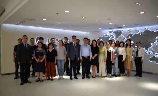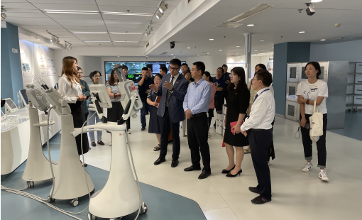 黄石雷带领教师党员参观了南京巨鲨医疗科技有限公司展会中心,作为一家医疗高科技企业,巨鲨医疗的智能化影像中心、智能化手术室以及智能化医用高压注射系统等展品让与会的党员老师对巨鲨的科技创新水平有了更直观的认识。