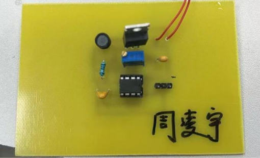 随后,学员们迎难而上,投身于雾化器的制作。首先,同学们运用嘉立创等专业工具,设计了电路板(PCB)的图纸。这个步骤是整个雾化器制作的基础,需要精确地规划电路连接和元件布局。手动布线的困难程度着实难住了不少同学,但大家依然努力的克服困难。PCB图设计完成,接下来便是将设计好的图纸打印到电路板上,这样就可以将电路布局精准地转移到实际的硬件上了。在用马克笔描线完成后,学员们使用溶解液腐蚀铜板上多余的铜。这是一个关键的步骤,化学腐蚀能够保留所需的导线和连接,形成电路。接着大家在电路板上打孔,以便将元件焊接到电路板上。打孔要精准,确保元件能够牢固地固定在电路板上。最后学员们将电路板上的元件,如电阻、电容等焊接固定到相应的位置,确保连接牢固可靠。