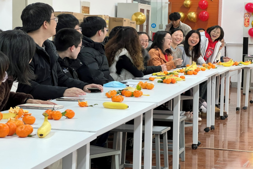 其间穿插了小游戏猴子上树、你画我猜、蒙眼吃香蕉、运球接力等,联欢会现场气氛热烈。
