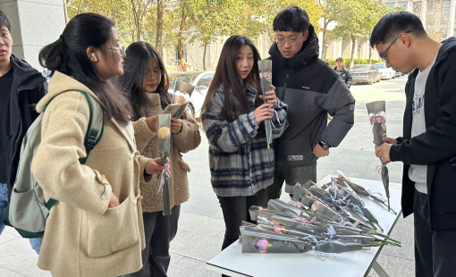 不到半个小时,点位上的花朵就被领完了。这次活动让更多的女生获得了展示自己的机会,促进了同学们之间的交流,展现了人性关怀的大课题。借此次活动的机会祝福所有的女性,愿你们梦想照进现实,幸福竭力生长,伴随着这温暖的祝福,妇女节快乐!
