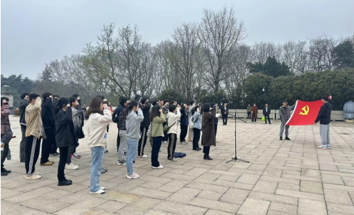 在庄严肃穆的雨花台烈士纪念碑前,大家怀着崇敬的心情,向长眠于此的革命烈士鞠躬并敬献花圈。随后,大家在纪念碑前重温入党誓词,坚定理想信念。本科生第一党支部陈静茹表示,雨花台是一个山清水秀、风景宜人的地方,却也是中国共产党人和革命志士的刑场,有成千上万的革命烈士在这里牺牲,他们牺牲时候平均年龄还不到30岁,最小的年仅16岁。在灵魂和肉体的双重考验下,他们用生命践行了自己对党和人民的承诺:“信仰至上,慷慨担当,舍身为民,矢志兴邦”。他们将自己的生命点燃,发光发热,照亮祖国的光明未来,这样的坚定信念使我们受用终生。
