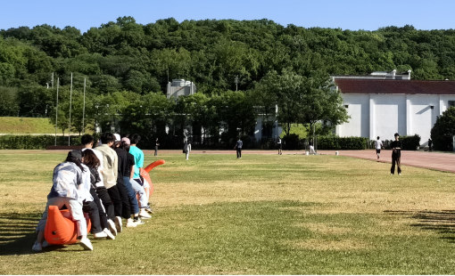 第三个环节是“不倒森林”,自由参加,10人一组,顺时针旋转,旋转过程中,后方同学需抓住前方同学的握杆,确保不会掉落至地上,不断PK,直至决出最后赢家。三个环节结束后,同学们迎来了十分期待的“套圈”项目,个个热情高涨,摩拳擦掌,每当套中时,人群中便会发出一阵欢呼。夕阳西下,青春的面庞上都洋溢着笑容。