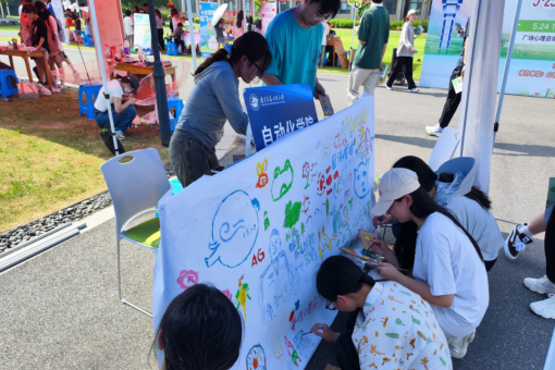 当日下午的尚贤楼南广场热闹非凡,自动化学院的摊位上,画布、颜料等涂鸦工具一应俱全,等待着同学们的到来。随着时间的推移,越来越多的同学们被吸引至此,他们拿起五彩斑斓的画笔,开始在画布上挥洒自如,尽情创作。