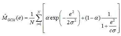 (1)为了克服传统单一高斯核函数MCC滤波器的局限性并提高滤波性能和灵活性,提出了一种新颖的GCM_MCCKF算法,该算法通过引入Gaussian-Cauchy混合核,显著增强了基于MCC滤波器在工业系统中应对重尾非高斯噪声的鲁棒性。与传统方法相比,此方法结合了Gaussian核与Cauchy核的优势,在提升噪声鲁棒性的同时提高了应用的灵活性。基于Gaussian-Cauchy混合核的相关熵代价函数构建如下: