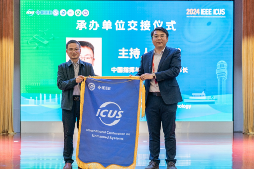 大会主旨报告结束后,举行了大会承办单位交接仪式,由中国指挥与控制学会宋鹏副秘书长主持。2025年第八届IEEE国际无人系统大会承办单位北京航空航天大学代表周建山副教授致词,阐述了北京航空航天大学承办2025年IEEE国际无人系统大会的优势,承诺将以高度的责任感与执行力确保大会的顺利举办。