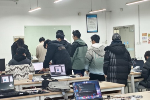 课程开始,李泰从简单的蓝牙串口配置讲起,一步步拆解复杂原理,在黑板上绘制出清晰的线路图,又在电脑上实时演示操作步骤,让大家轻松理解通信奥秘。在李泰的指导下,同学们动手实践,随着代码输入完成,串口成功配置,感受科技带来的震撼,为后续实践操作筑牢根基。