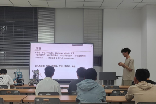 活动伊始,周孜晗同学以自身丰富的经历和深厚的科研素养,开启了本次科研传帮带的序幕。他围绕大创立项到结题整个环节,为同学们进行了全面而细致的讲解。从选题的思路拓展到立项书的精准撰写,从研究过程中的常见问题规避到结题时的成果梳理,周孜晗同学都一一进行了深入剖析,并结合实际案例分享了实用的技巧和经验。他强调选题要紧扣专业前沿和实际需求,立项书要结构清晰、论证充分,研究过程中要注重团队协作与数据管理,结题时要突出创新点和成果价值,让同学们对大创项目的全流程有了清晰且深刻的认识。紧接着,周杨同学聚焦于同学们普遍关注却又容易迷茫的竞赛选择,倾囊相授。他详细介绍了与专业相关的学科竞赛的特点、难度系数、备赛要点以及对个人成长和未来发展的重要意义,如全国智能车总决赛、电子设计竞赛等热门赛事。周杨同学还分享了自己在备赛过程中的时间管理技巧、团队角色分配策略以及应对竞赛压力的心得,鼓励同学们根据自身兴趣和专业优势,合理选择适合自己的竞赛,在竞赛中锻炼实践能力、培养创新思维、提升团队协作精神,以赛促学,以赛促研。最后,唐纪元同学针对专业选修课选择与未来发展这一重要话题,与同学们展开了一场精彩的头脑风暴。他深入分析了不同专业选修课程与学科竞赛、科研方向以及职业规划之间的关联,为同学们提供了极具价值的选课建议,助力同学们在选修课选择上更加精准地匹配自身的发展目标和兴趣所在。三位学长为同学们答疑解惑,现场气氛热烈。