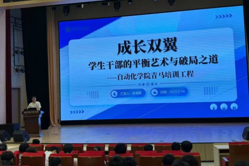 5月14日,自动化学院青马工程第二次课程开讲。21级自动化专业赵重阳同学以“成长双翼,学生干部的平衡艺术与破局之道”为主题,从学习、工作、个人成长等多维角度为青马学员带来一场有料、有用的精彩分享。