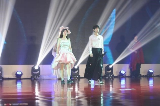 比赛之夜,舞台璀璨夺目,喝彩如潮。24级电气3班黄玉淅同学身着一条以“梦幻绮想”为设计理念的裙子,亮片似星芒、锡纸花饰若晚樱,将童话碎片缝入裙裾,让每一步都踩碎现实边界,奔赴纯粹浪漫的梦境,惊艳全场。24级电气3班梁爽同学身着花色裙装,回收的锡纸精心裁成翩跹蝴蝶点缀其中,赋予平凡废弃物灵动身份,同时融入塑料薄膜元素增添轻盈梦幻质感,让曾被视为污染的材料重获新生。她步伐轻盈,裙摆微晃,举手投足间漾起朦胧美,散发十足魅力。24级机器人3班王鑫、23级自动化4班周百川、24级电气南自1班朱婧婍、23级电气1班缪敏昊、24级自动化3班房妍青也分别带来了精彩呈现,他们步伐沉稳且自带韵律,每一步都在传递时尚与环保共生的力量。