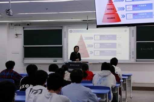 唐翠梅以《礼记·大学》中的“大学之道,在明明德”开篇,引导学生明确大学学习的目标与任务,并主要围绕学生干部能力培养与成长路径展开讲课。她鼓励学生干部要树立远大理想,燃起想做好一件事的信念火种;要以学科专业的学习为第一位,提升能做专业事的能力;要注重在实际工作与任务中历练自我,提升能做好具体事、复杂事的综合能力。讲课中,她结合张泉灵在北大毕业典礼上的一段演讲,引导同学们要学会从丰富的实践活动中寻找自己的热爱与兴趣点,从大一起就要注重在专业学习中保持专注与热情,在工作与实践中追寻热爱与成长。