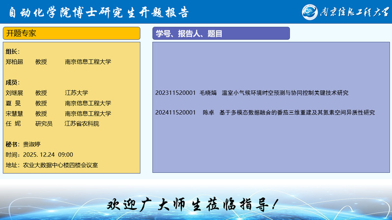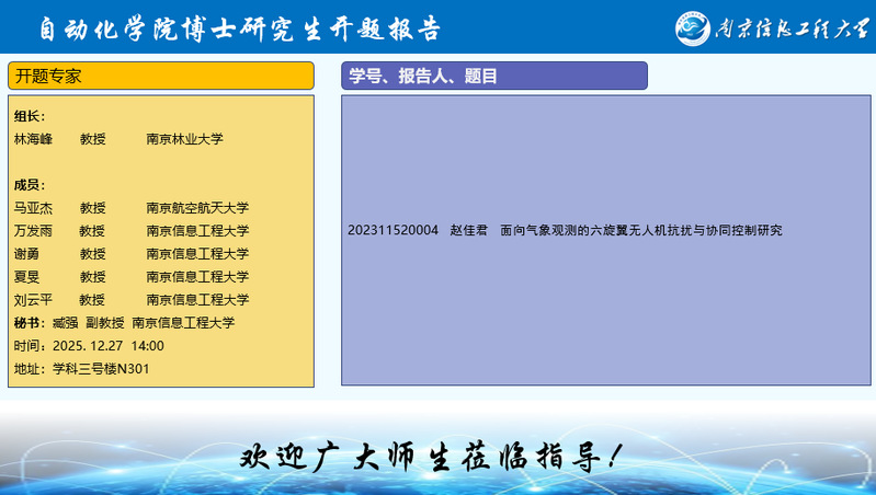 2025年自动化学院博士研究生学位论文开题