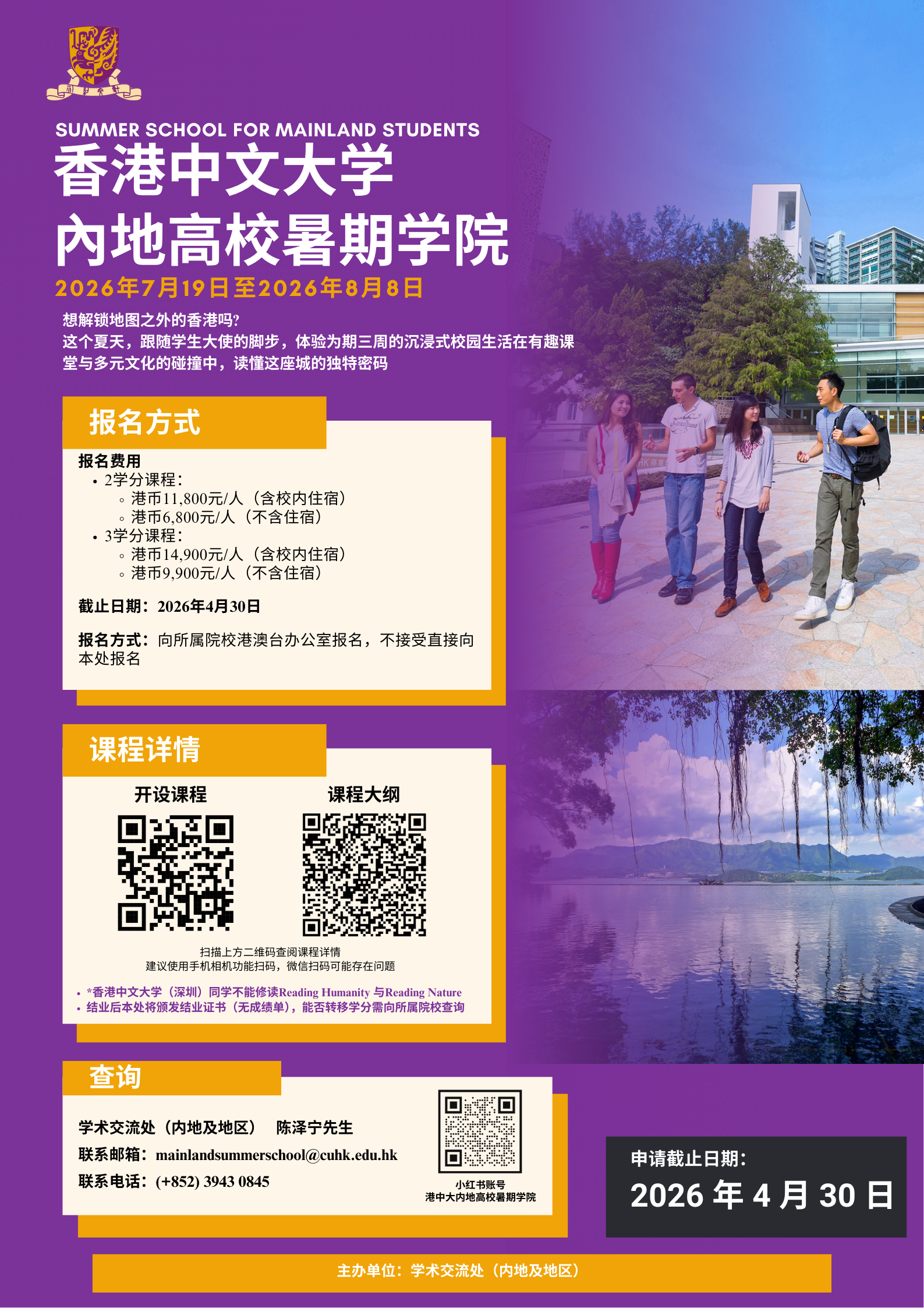 香港中文大学已启动2026年内地高校暑期学院项目,面向内地合作院校开放报名。现将有关事项通知如下: