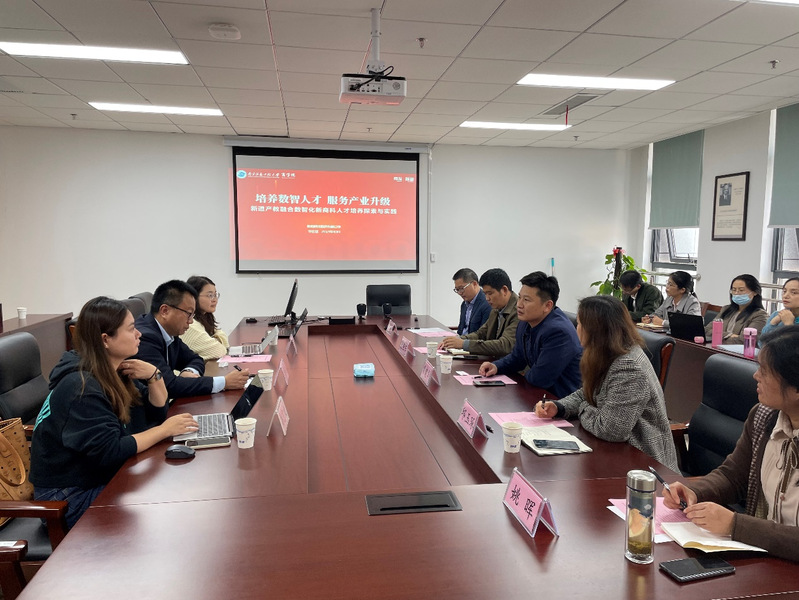 2021年10月27日下午,新道科技股份有限公司苏皖区副总经理李佳铭、校企合作经理周潇潇一行来我院,就校企合作及专业共建进行交流研讨,座谈会在阅江楼502会议室举行。南京信息工程大学教务处副处长常建华、实验室与设备处副处长夏艳东、商学院副院长邱玉琢、副院长于波、会计与财务金融系主任姚晖、会计与财务金融系专任教师出席会议。会议由商学院副院长于波主持。