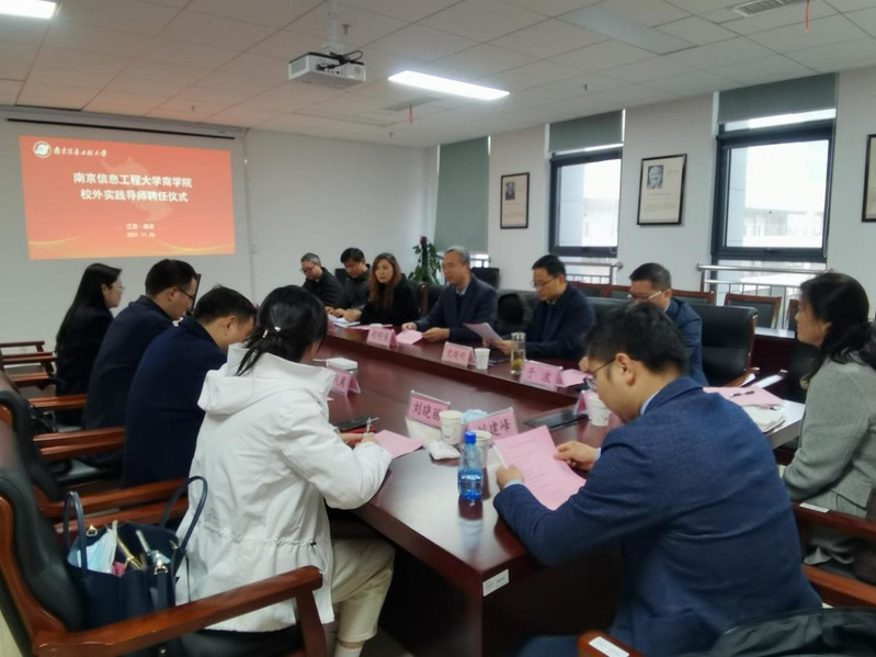 11月26日下午,商学院举行会计专硕校外实践导师聘任仪式,来自国家开发银行江苏省分行、凤凰传媒集团、徐工集团、江苏国信、中车南京浦镇车辆、苏美达集团等17家企事业单位的江苏省会计领军人才受聘为我院会计专硕校外实践导师。校党委常委、总会计师胡明保,省财政厅会计处副处长史晓明,商学院领导以及系主任出席仪式。聘任仪式由商学院院长邱玉琢主持。