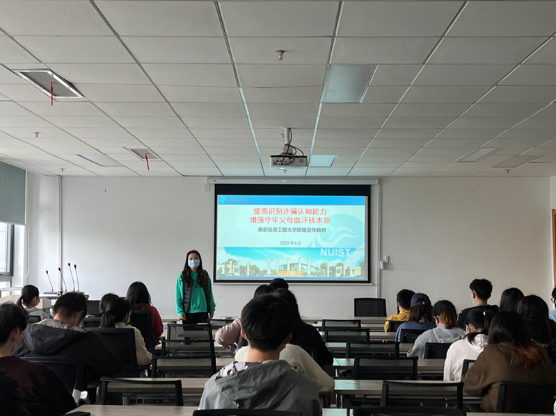 为进一步提升在校大学生对于网络、电信诈骗的防范意识,加强学生对于当前诈骗手段的辨别能力,营造健康安全的校园环境。2022年4月18日下午,商学院于阅江楼425召开了以“提高识别诈骗认知能力,增强牢守父母血汗钱本领”为主题的防诈骗主题教育班会。本次班会由商学院辅导员刘婷婷主讲,20会计学2班同学全体参会。