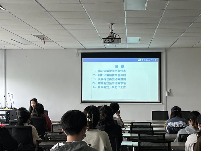 首先,刘老师为大家揭示了当前诈骗犯罪的形势和特点,指出新形势下花样百出的诈骗套路和其显著特点;其次,她详细剖析诈骗案件高发的原因,提醒同学们勿贪小利,时时留心;再次,借助由真实案例改编的视频资料,真实再现了诸如“熟人诈骗”、“刷单诈骗”等典型诈骗套路,并对不同诈骗类型提出了有针对性的防范措施;最后,刘老师通过列举身边同学被诈骗的真实案例,提醒同学们:诈骗就在身边,切忌误入圈套。希望同学们务必做到心莫贪、擦亮眼,不听、不信、不转账,时刻守护好自己的钱袋子。