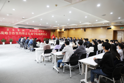 随后,双方签署战略合作协议,并为南信大京东商学院揭牌。根据协议,校企将合作共建“京东商学院”,创设“京东实验班”“京东商务班”“京东产教融合协同育人基地”等;共建“京东信大智能物流研究院”,加速推动基础研究成果在商业领域的应用转化与推广;共建“京东校园馆”,建成在校师生实习实训和创新创业的重要基地。