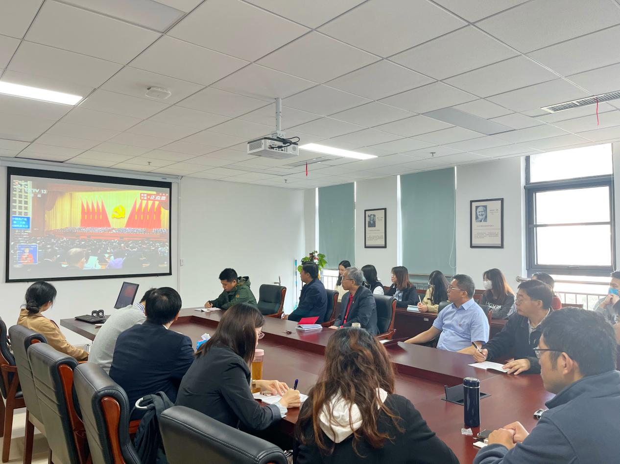 10月16日上午,举世瞩目的中国共产党第二十次全国代表大会隆重开幕。商学院党委领导班子,以及各师生支部党员代表在阅江楼502会议室集中收看二十大开幕式现场直播盛况。