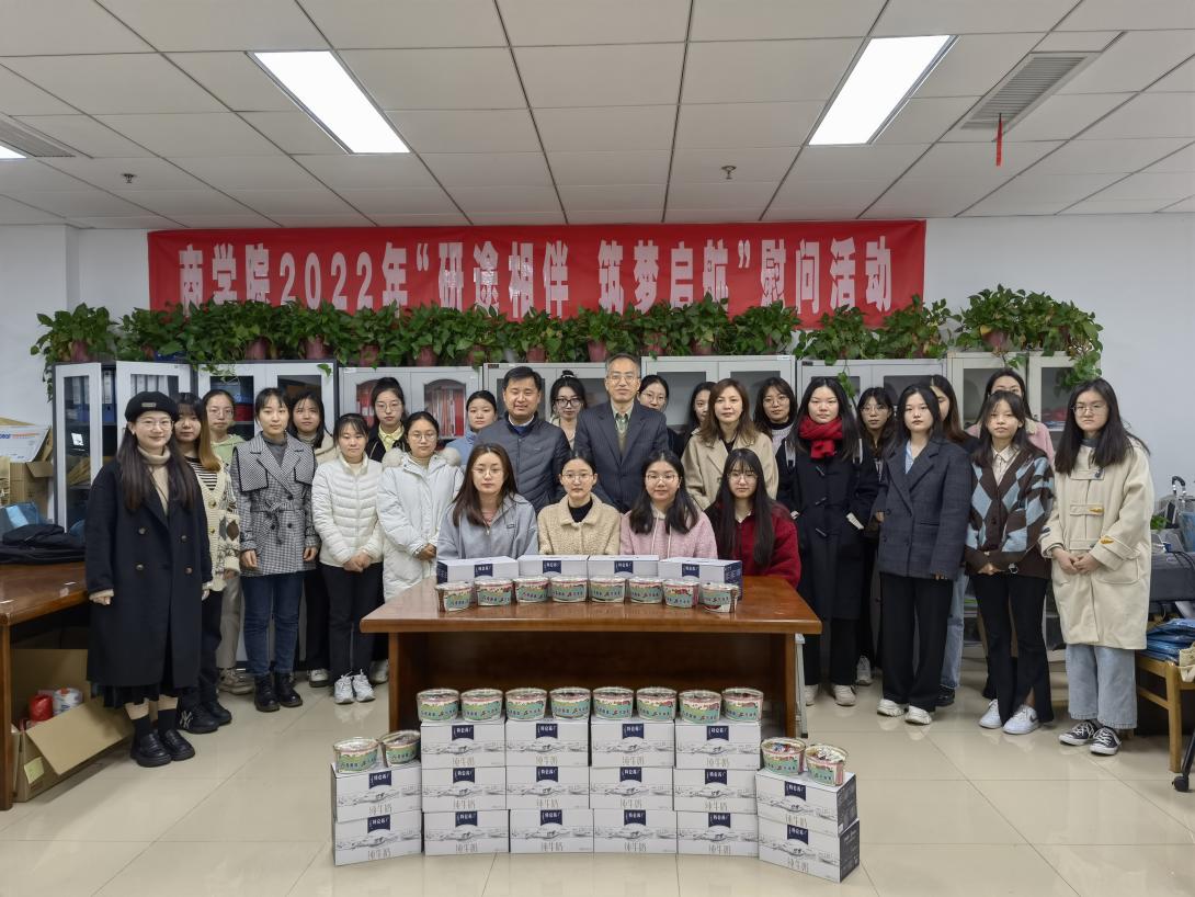 2023届学生考研复习已经进入了最为紧张的阶段,为进一步激发考研的热情,鼓舞考研士气,坚定考研信心,缓解备考压力,11月16日上午,商学院在阅江楼406开展了2023届考研慰问活动,为冲刺阶段的学生送上暖心礼包。学院院长邱玉琢、党委书记孙再春、党委副书记兼副院长陈银及2019级考研学生代表参加了本次活动。