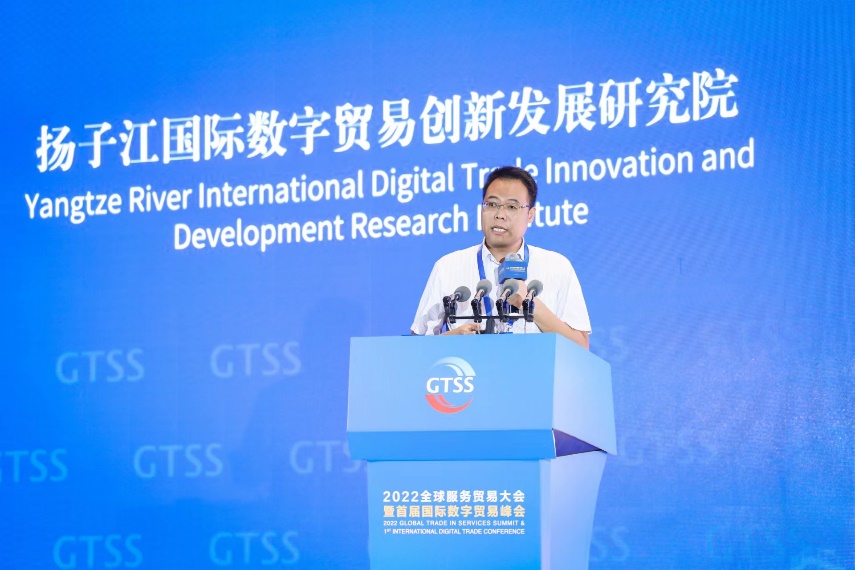 9月8日,“2022全球服务贸易大会暨首届国际数字贸易峰会”在南京开幕。商务部副部长钱克明,江苏省副省长陈星莺,南京市委副书记、市长夏心旻出席大会并致辞。在大会上,我院姜彩楼教授代表扬子江国际数字贸易创新发展研究院发布了“2022年中国城市数字贸易指数(DTI)蓝皮书”。作为中国第一个以城市为测度单位的数字贸易指数,该指数一经发布就引起了社会各界的广泛关注。