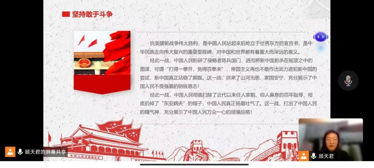 19级人力资源管理党小组围绕“坚持敢于斗争”主题文章进行学习,还集中观看了抗美援朝时期历史影片。