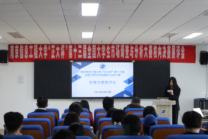 3月29日下午,南京信息工程大学“正大杯”第十三届全国大学生市场调查与分析大赛校内决赛展评会在阅江楼426举行。本次校内决赛展评会邀请南京财经大学经济学院教授陈耀辉、南京审计大学统计与数据科学学院统计学系主任黄性芳担任评委并进行点评指导。所有进入校决赛参赛团队成员以及部分学生代表参与此次活动。