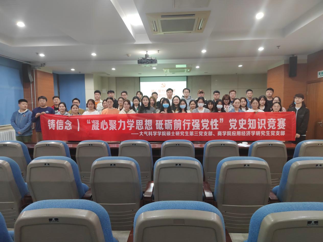 为了带动广大党员加强对二十大精神以及党史学习,传承红色基因,进一步激发奋进新征程的动力,4月12日,商学院应用经济学研究生党支部联合大气科学学院硕士研究生第三党支部在气象楼423报告厅共同开展“铸信念 | 凝心聚力学思想 砥砺前行强党性”党史知识竞赛党日活动。
