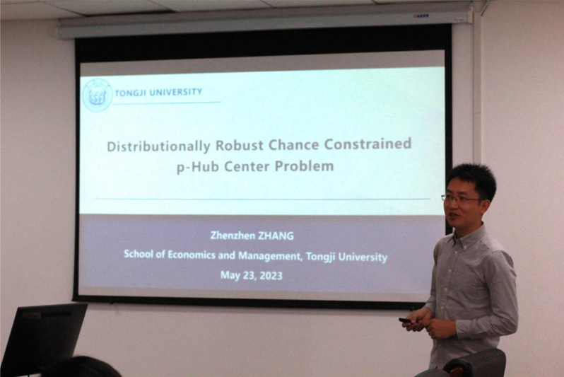5月23日上午,商学院在阅江楼502会议室举办第九期京东大讲堂。此次讲座邀请同济大学张真真副教授作题为“Distributionally Robust Chance Constrained p-Hub Center Problem”的学术报告。商学院院长邱玉琢教授主持学术报告,供应链管理系教师、21级京东实验班全体学生参加此次讲座。
