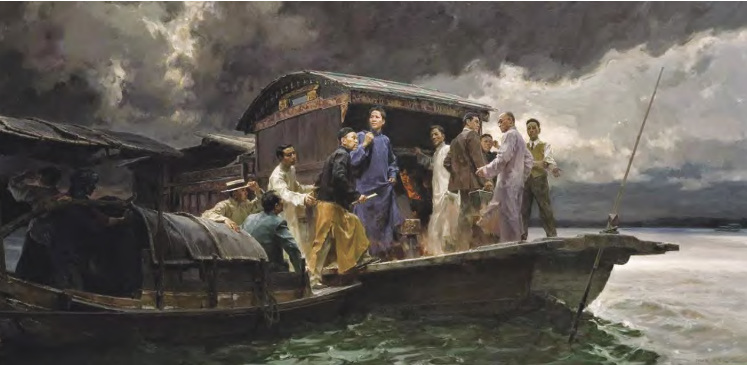 油画作品《启航——中共一大会议》