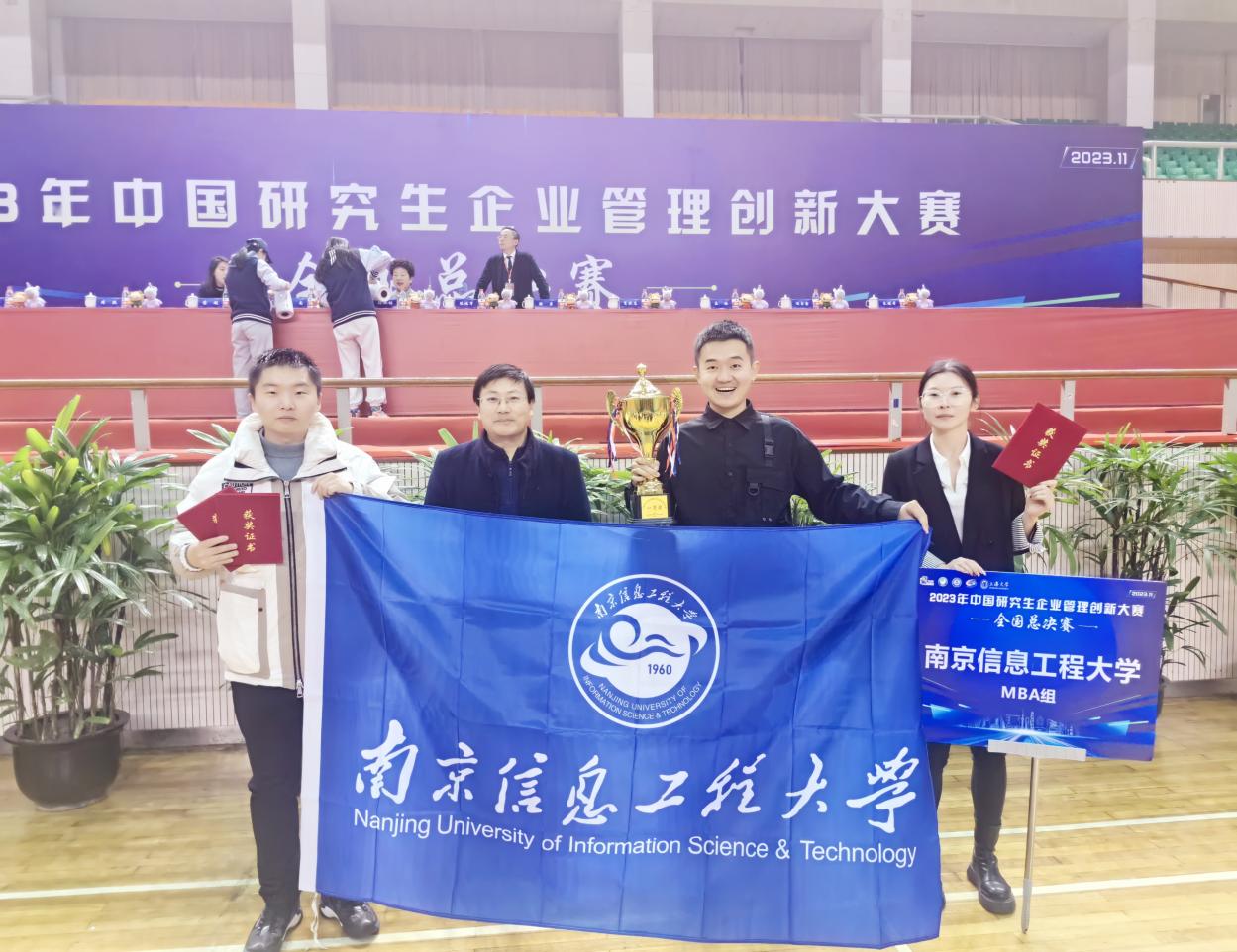 南京信息工程大学代表队——“听你俩的”队通过一天的鏖战终于斩获大赛国家一等奖。南京信息工程大学代表队是由商学院MBA中心四位优秀学员组成,指导老师:谷媛媛、魏向杰。现场指导老师由中心副主任谢荣见教授担任。